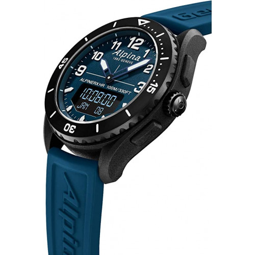 - La mezcla perfecta de la herencia de Alpina y el modernismo en el reloj inteligente para exteriores más hermoso del mundo. El AlpinerX Alive incluye nuevas características tales como: respiración, hidratación, V02 Max e índice de fitness cardiovascular. Junto con funciones conectadas como seguimiento de actividad y sueño, notificaciones de llamadas y mensajes, grabadora de tiempo y un temporizador mundial, el AlpinerX Alive también cuenta con una batería recargable. La clave del sistema son dos grandes avances tecnológicos. Primero, monitoreo de frecuencia cardíaca, lograda integrando los últimos sensores Philips Wearable Sensing. Segundo, GPS integrado. Esta nueva funcionalidad registra tu carrera o caminata, combinando la información con tu frecuencia cardíaca para que pueda ser analizada con la aplicación Alpina Smartwatch para iOS y Android. Este reloj multifuncional cuenta con una caja de fibra de vidrio, un bisel de brújula bidireccional PVD, una pantalla táctil AMOLED de alta resolución y una correa de goma azul. Con este reloj estarás listo para conquistar todas tus aventuras diarias