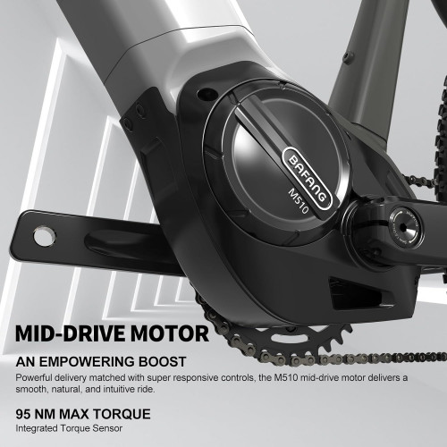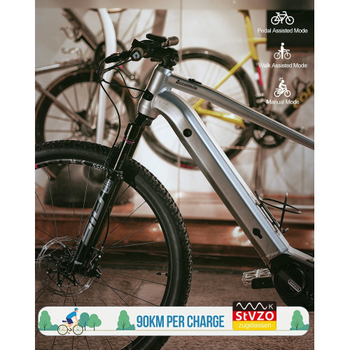 - 【Motor Extremadamente Silencioso y Potente】Equipada con el conocido motor central de la serie M510, esta ebike representa una mejora impresionante en el rendimiento de la eMTB de Accomile. La potencia entregada, combinada con controles súper receptivos, proporciona una conducción suave, natural e intuitiva. El torque máximo es de 95N.m. La velocidad máxima es de hasta 25 KM/H. Equipado con 5 niveles de asistencia del 0 al 5.