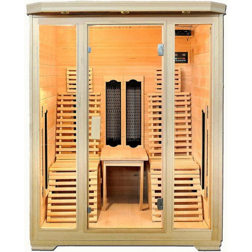 - Nuestra cabina de infrarrojos es especialmente eficiente de energía y ofrece una opción libre de temperatura de 20 a 65 grados. Además, hay un control digital interior, un control de temperatura con pantalla digital, circuitos de emisión seguros por separado, aromaterapia, una lámpara de lectura, iluminación exterior, una válvula de ventilación, limpieza por ozono y mucho más.