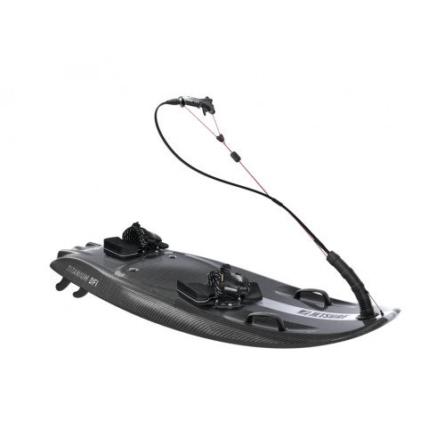 El Titanium DFI superligero cuenta con un casco de fibra de carbono rediseñado en la entrada para ampliar los límites en el sector de las tablas de surf motorizadas. Presenta un aspecto único y sorprendente en fibra de carbono cruda, que combina tecnología de punta con un estilo sofisticado. La aleta de fibra de carbono frente a la entrada de la bomba de chorro produce una depresión adicional y aumenta el flujo de agua, mejorando así las prestaciones de la tabla.