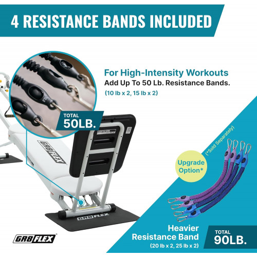 - 15 diferentes niveles de resistencia más 10 lb adicional, 15 lb, 20 lb, 25 lb, 30 lb, 35 lb, 40 lb o 50 lb con las bandas de resistencia en la parte superior de su nivel de resistencia.
