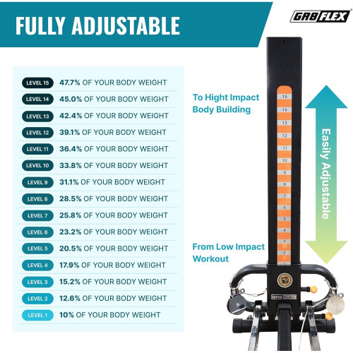 alfombrilla/suelo. El gimnasio GR8FLEX tiene 15 niveles de resistencia