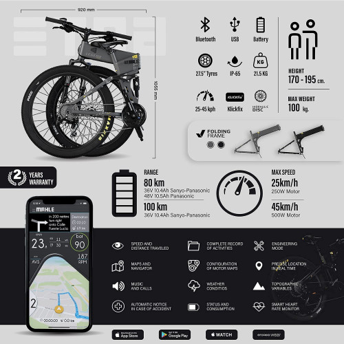 - ✅ Smart Bike con joystick SCI de 5 botones LED, 4 niveles de asistencia y el sistema eléctrico Ebikemotion desarrollado por Mahle (Alemania) con Bluetooth y compatible con nuestra App Android/iOS para un control total sobre tu bicicleta.