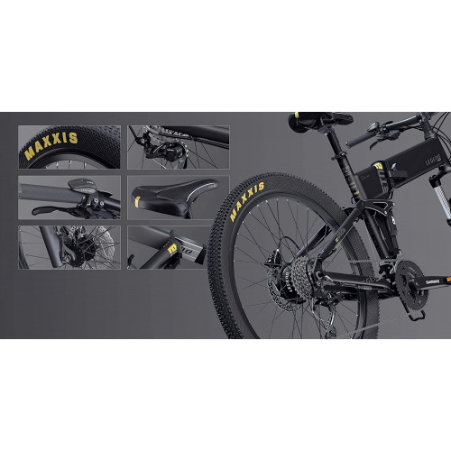 - ✅ Bicicleta de montaña eléctrica plegable versátil y apta para todos los terrenos con ruedas antipinchazos Maxxis Pace de 27,5 pulgadas y marco plegable reforzado. Este VAE es adecuado para personas de menos de 100 kg y entre 1,70 y 1,95 m.