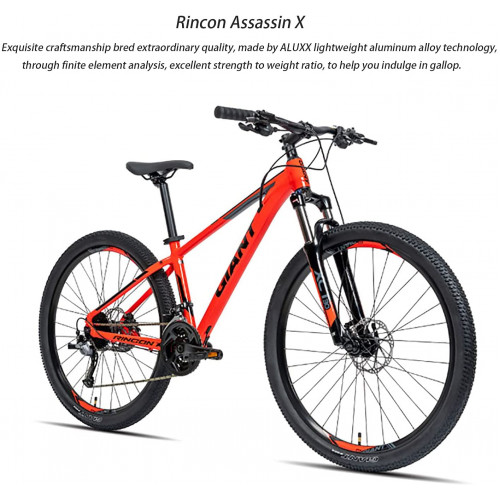 loknhg Giant Rincon X Assassin X Aluminio 27 velocidades 27.5 Pulgadas Freno de Disco Bicicleta de montaña Naranja Negro 27.5X15.5 S Altura Recomendada 165 / 173cm