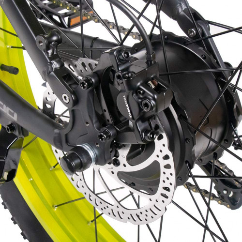 - Diseño duradero de neumáticos grandes: diseño de ruedas grandes de 26 x 4 con un peso de 200 kg. Adecuado para la mayoría de las áreas. Sistema de frenado: la bicicleta eléctrica está equipada con frenos de disco delantero y trasero y un cambio Shimano profesional de 9 velocidades. La suspensión completa absorbe los golpes durante la conducción y una vez que se acciona el freno, la alimentación se apagará automáticamente.