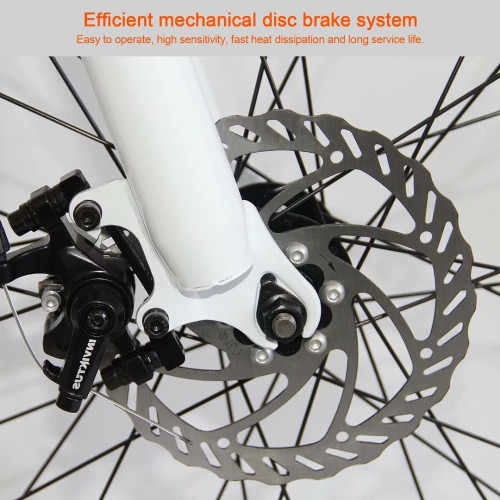 • Calidad excepcional: la bicicleta eléctrica tiene un sistema de transmisión Shimano de 21 velocidades, frenos de disco mecánicos sensibles, un excelente cuadro de aleación de aluminio y una horquilla delantera con suspensión.