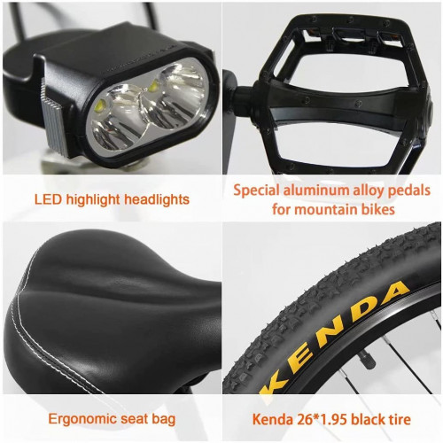 • Tres modos de conducción: la bicicleta de montaña eléctrica tiene un modo puramente eléctrico, un modo de asistencia de mano de obra y un modo de conducción puramente manual.