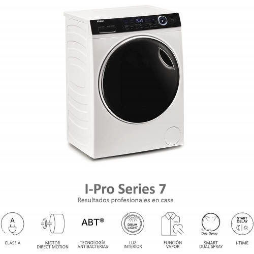 Haier I-Pro Series 7 HWD120-B14979 - Lavadora secadora, 12KG + 8KG de secado, Función Vapor I-Refresh y Antimanchas, Motor Direct Motion, Tecnología Antibacterias, 1400 RPM, 14 Programas, Clase AE [Clase de eficiencia energética A]