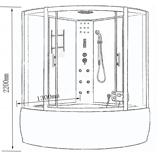 BAÑERA HIDROMASAJE CROMOTERAPIA Modelo "VIENNA" 130 X 130 X h 220 cm - BAÑERA PARA 2 PERSONAS Objeto nuevo – Embalado Certificado EU USTED RECIBIRÁ TODOS LOS ACCESORIOS PARA MONTAR EL HIDROMASAJE SIN PROBLEMAS. ¡MONTAJE Y FUNCIONAMIENTO FACILES! - ESPECIFICACIONES TECNICAS: Dimensiones de la bañera: base 130 x 130 x h 220 cm Bomba de hidromasaje de 1,5 HP Bañera de hidromasaje doble: ducha y baño n 2 reposacabezas Masaje de pies n 12 luces LED Cabezal de ducha central de alta cascada con luz para cromoterapia n 6 boquillas de hidromasaje pequeñas n 4 boquillas de hidromasaje grandes Toallero Sistema de ventilación Columna de ducha de hidromasaje Contraventanas de vidrio oscurecidas Radio Panel de control Base reforzada de ABS Cierre magnético Columnas de aluminio satinado Descarga de ventilación Perillas de cromo Compartimento de almacenamiento de vidrio Control de agua caliente - agua fría Baño antideslizante Drenaje de agua Control de ventilación Altavoces estéreo Vidrio antichoque templado y oscurecido de 5 mm