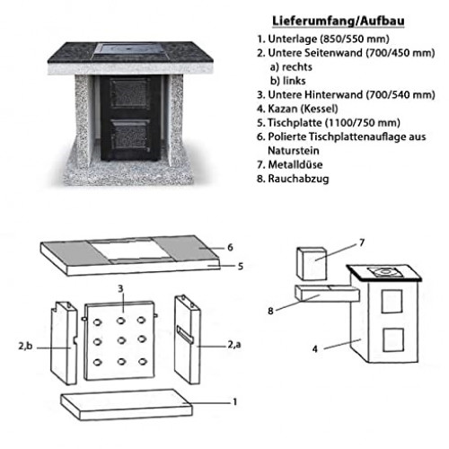 Módulo de piedra "horno" es compatible con otros productos de esta serie, como por ejemplo barbacoa de piedra "Darina-XL", mesa de piedra o lavabo. Estos módulos forman una cocina de jardín perfecta