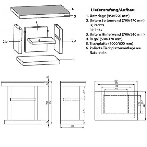 Módulo de piedra "mesa" – una ampliación ideal de tu cocina de jardín o parrilla estacionaria. La superficie de granito de toda la superficie de trabajo tiene una función práctica y estética. Este material es resistente a arañazos mecánicos y lo más importante, no absorbe prácticamente ninguna grasa