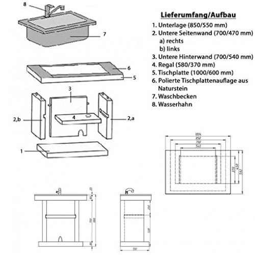 Darina Stimlex - Cocina exterior de hormigón, barbacoa XL (set), tapa de acero inoxidable, superficie de trabajo, bandeja de cocción de hierro fundido, mesa + lavabo + horno