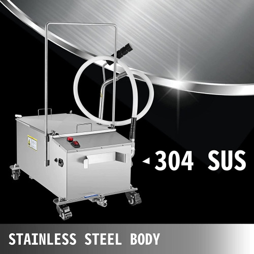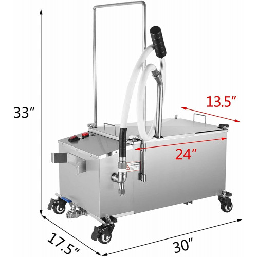 Características clave Cuerpo de acero inoxidable El cuerpo de acero inoxidable 304 de calidad alimentaria con junta de silicona de calidad alimentaria garantiza la excelente calidad de la máquina, elegante, duradera, segura y fácil de limpiar. Filtración efectiva La capacidad creciente de 22/40/58 L le permite disfrutar de una comida más deliciosa al mismo tiempo.El papel de filtro se fija entre el marco de la pantalla y la junta de silicona, lo que proporciona un efecto de filtro de alta precisión. Manguera de aceite flexible La manguera de aceite está hecha de silicona y presenta un diseño de junta universal, que es adecuada para varios tipos de freidoras.El diseño fácil de usar puede drenar fácilmente el aceite residual en la manguera para evitar que se obstruya. Movimiento conveniente Cuatro ruedas universales, incluidas dos ruedas giratorias bloqueables, y el empujador humanizado son convenientes para mover el filtro y permitir que la máquina se arregle. Botones sin complicaciones El interruptor de encendido controla el encendido/apagado del filtro de aceite del restaurante.Presione el interruptor de la manguera para liberar el aceite filtrado de la manguera de suministro de aceite. Detalles bien diseñados La válvula de drenaje de aceite es conveniente para liberar residuos de aceite;El enrollador es perfecto para fijar el cable de alimentación;La red de seguridad puede evitar que entren partículas grandes en la máquina;El mango antideslizante para una fácil operación. Filtro de aceite de freidora móvil 58L Capacidad de aceite: 58L (116 libras) Potencia del Motor: 300W Volumen de la bomba: 10L/min Volumen de caudal: 5L/min Velocidad del Motor: 1800r/min Presión de salida: 0.33Mpa Temperatura del aceite: 120-180 / 248-356 Volumen de la bomba: 10L/min Dimensión del artículo: 30.9 x 17.3 x 13.8 pulgadas Volumen de caudal: 5L/min Contenido del paquete 1 filtro de fre