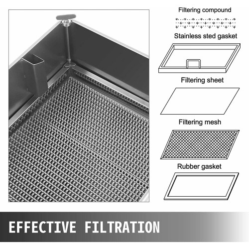El cuerpo de acero inoxidable 304 de CALIDAD PREMIUM más la junta de silicona de calidad alimentaria hacen que nuestro filtro para freír aceite sea liviano pero duradero, lo que brinda una calidad excelente, una apariencia elegante y la ventaja de una limpieza fácil.El perfil bajo permite una fácil colocación debajo del desagüe de la freidora.