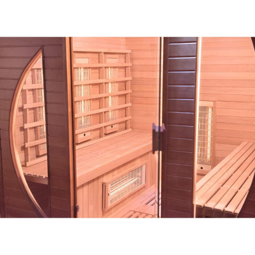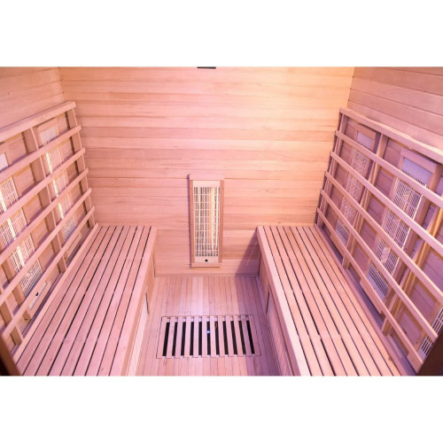 • Una marca reconocida en el campo del bienestar. Garantiza un modo permanente de vigilancia de los productos. Reconocida por su principal objetivo de calidad al mejor precio.. Disfruta de los muebles saunas para una comodidad óptima: esta cabina de infrarrojos está fabricada con material de alta calidad para ofrecerte una mayor comodidad durante su uso. La relajación y la relajación son favorecidas por esta nueva generación de sauna: el alivio de los músculos o las articulaciones está asegurado precisamente. Incluso la temperatura máxima se controla durante un período de 60 min. Hecho de madera de abeto con certificación de origen Canadá: madera brillante de alta calidad. Se adapta fácilmente a los interiores gracias a su diseño sobrio y elegante típico sauna tradicional. Banco y reposacabezas fabricados en abachi. Mejor relación calidad/precio: gracias a una experiencia y conocimientos reconocidos, France Sauna ofrece la mejor relación calidad/precio.