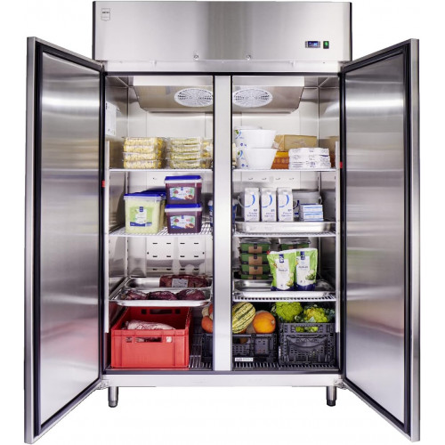 METRO Professional Frigorífico GRE1400, acero inoxidable, 131.4 x 80.5 x 206.5 cm, 940 L, refrigeración por ventilación, 350W, con cerradura, plata [Clase de eficiencia energética B]