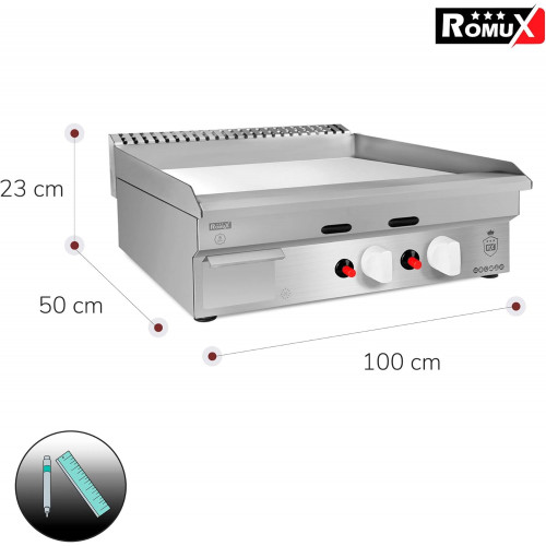 Romux® - Plancha de Cromo Duro a Gas 100 cm Sobremesa Top | Plancha Industrial para Hostelería de Calentamiento Rápido para un Cocinado Profesional