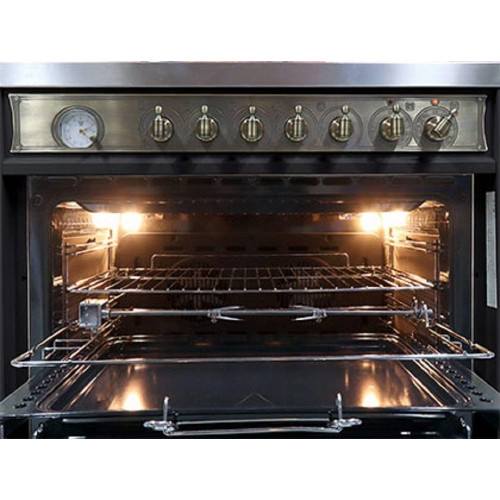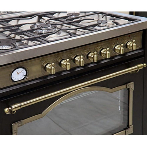 • Los botones de control, las manijas de las puertas y los marcos de las ventanas del horno están hechos de bronce macizo.