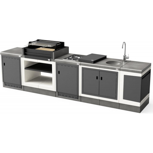 MAESTRO FERRETERO TUOZI - Pack 4 KITAWAY [F] – Cocina DE Exterior KITAWAY Grill – Barbacoa Modular con Parrilla de Acero Inoxidable, Fregadero, Soporte y Reciclaje (300 x 63 x 115 cm)