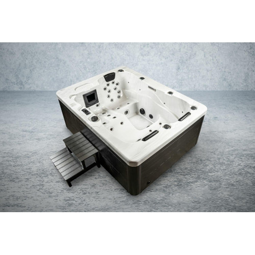 Con nuestra bañera de hidromasaje americana para 3 personas, puedes dejar atrás tu rutina diaria y relajarte por completo. Nuestro sistema informático Gecko le permite ajustar la temperatura individualmente y dejar que las luces LED de color brillen en diferentes colores para crear un ambiente relajante. Nuestro sistema de tratamiento de agua UV al aire libre y desinfección de ozono garantizan un ambiente higiénico y limpio en el que podrá relajarse por completo. El aislamiento total garantiza que puedas utilizar la bañera incluso en temperaturas frías y también ahorra costes de energía.