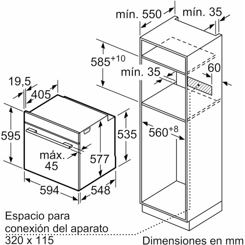 - Dimensiones: 59,5 x 59,4 x 54,8 centímetros (alto x ancho x fondo). En cuanto a su cavidad tiene unas medias de 35,7 x 48 x 41,5 centímetros (alto x ancho x fondo).