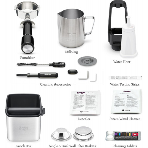 - Portafiltro Profesional: Viene con un portafiltro de acero inoxidable de 58 mm, con capacidad para una dosis de 22 g para un café rico y complejo