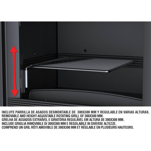 Características Sistema de Doble Combustión Sistema de Cristal Limpio Potencia calorífica: 14kw Rendimiento (%): 77% Consumo (kg/h): 4, 3kg/h Volumen calefactable (m3): 350m3 Interior Fundición Elaborado en Fundición y chapa Peso (kg): 145kg Diámetro salida de humos (mm): 200mm Boca útil cámara (mm): 780cmx320x510mm Puerta;40cmx 66.5 L