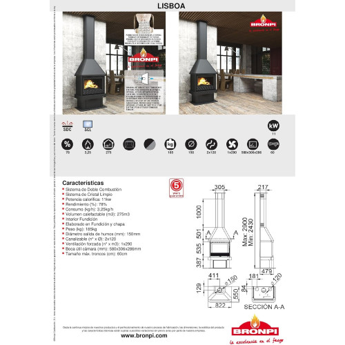 • CHIMENEA DE LEÑA CON TURBINA BRONPI MODELO LISBOA VISION