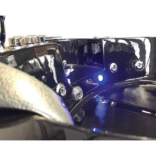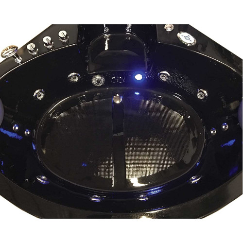 • 1 Ducha multifunción 1 Conmutador Regulador de presión de agua Aspiración agua Cascada modelo americano incluida Circulación agua 1 Luces Led grandes Grifería incluida Bañera de acrílico sanitario de alta calidad de color negro Peso: 100 kg Estructura de acero cromoterapia