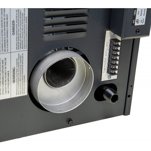 - Fácil acceso exterior a termostato y terminales de A/C. Conexión de gas de 1,27 cm.