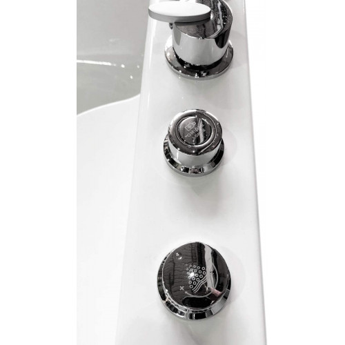 Panel de baño con estación de carga de agua, modelo LULU, 170 x 132 cm, para 2 personas, dimensiones de la bañera: base 170 x 132 cm, altura 65 cm, bomba 1,5 HP, sistema de agua para desinfección y esterilización, 2 reposacabezas, 14 chorros de agua, sistema de protección contra impactos eléctricos (seguridad automática), panel de control (ordenador), radio, 1 ducha funcional, 1 commutador de agua Regulador de aspiración de agua, modelo americano, cascada, circulación de agua, 1 diodo de luz grande, 1 altavoz, grifos incluidos, blanco, bañera de alta calidad de acrílico sanitario, peso: 100 kg, estructura de acero