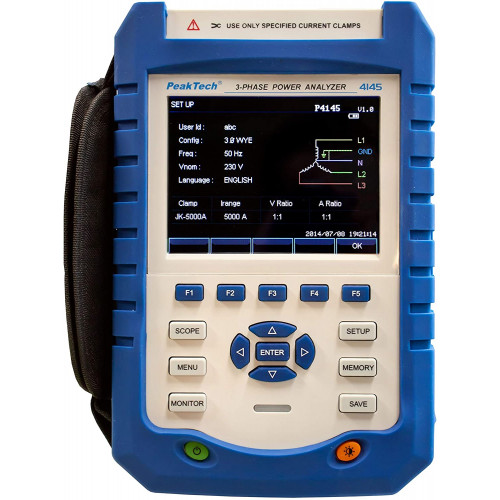 PeakTech P 4145 Red de 3 Fases/medidor de Potencia/Power Analizador ~ con LAN, USB, Pantalla TFT y Registro de Datos