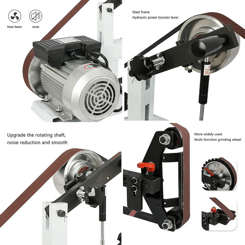 Esta máquina de lijadora de cinturón de 2 x 82 pulgadas es un tipo de nueva tecnología de procesamiento con una amplia gama de aplicaciones, como moler, desbarbado, intermitente, pulido y afilado, que se utilizan para cinturones abrasivos giratorios de alta velocidad. El desbaste puede moler la asignación de mecanizado de 1 mm de espesor a la vez.