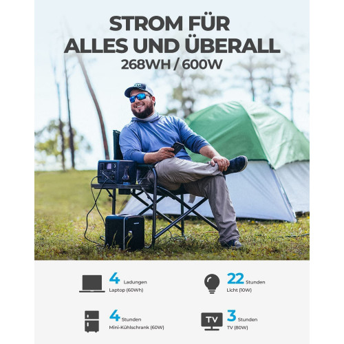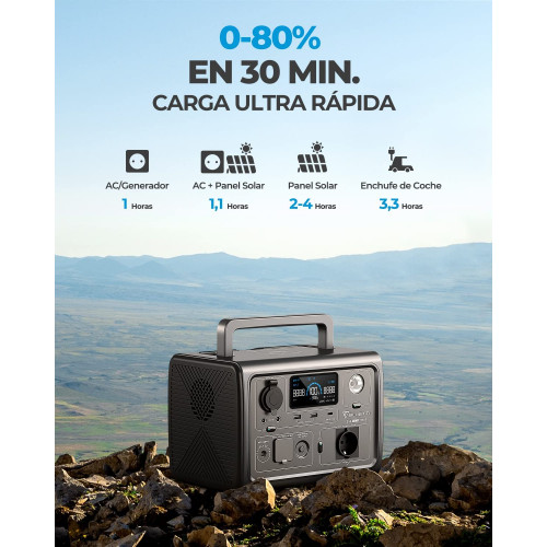 [Utiliza Energía Solar] - Este kit incluye 1 generador solar EB3A y 1 panel solar PV200, le permite cargar esta estación de energía de 268Wh del 0% al 80% en 1,5 horas, todo a través de la energía solar.