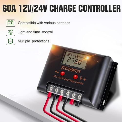 Controlador de carga de 60A- Tensión de la batería: 12V/24V