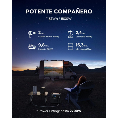 • [Energía Solar] - Este kit de generador solar incluye 1 × AC180 y 1 × panel solar PV200, lo que permite cargar esta central eléctrica de 1152 Wh de 0-80% en 4,6-9,2 horas.