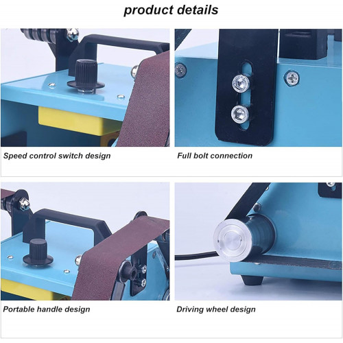 - 【Diseño de doble rodamiento】La rueda de la correa abrasiva tiene rodamientos dobles incorporados, que pueden funcionar al mismo tiempo para mejorar la eficiencia del trabajo, y la velocidad de la correa es de hasta 200-1000 m/s.