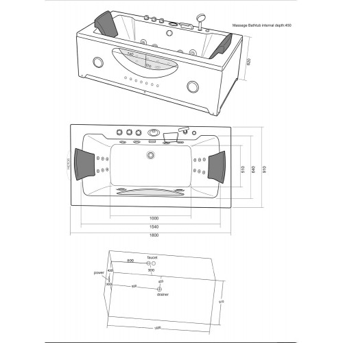 - COMO EN LA FOTO 100% ¡MONTAJE FÁCIL Y RÁPIDO! ESPECIFICACIONES TECNICAS Medidas de la bañera: base 180 x 90 cm (h 62 cm) Bomba Whirlpool 1,5HP Sistema de desinfección y esterilización 2 Apoyacabezas 12 pequeñas boquillas 4 grandes boquillas de cromo Sistema de protección contra la dispersión de electricidad (cortacircuitos automático)