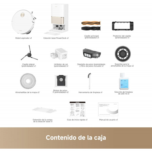 | Función especial | Vaciado automático, Limpieza automática de fregonas, Evasión de obstáculos Inteligente, Navegación de 360°, Succión 19 500 Pa |