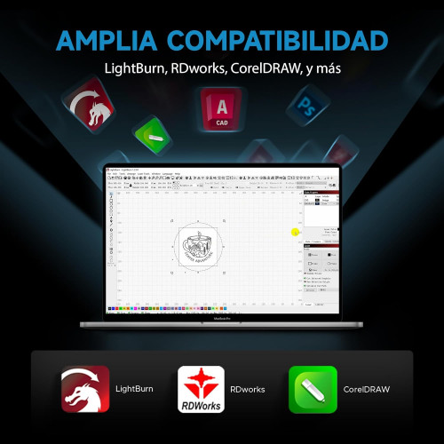 - Grabado Láser Seguro y Limpio: Con características de protección integrales, como protección contra el agua, asistencia de aire, alarmas de temperatura, protección de la cubierta y un botón de parada de emergencia, puedes grabar con tranquilidad, sabiendo que tu seguridad siempre es prioritaria