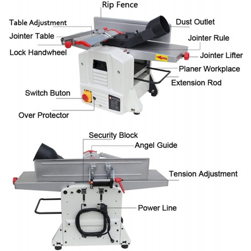Portátil Sierra de mesa multifuncional, eléctrico 8 pulgadas de escritorio de madera industrial 1500w mecánico de grosor ajustable / cepilladora Combinación máquina de la carpintería Herramientas eléc