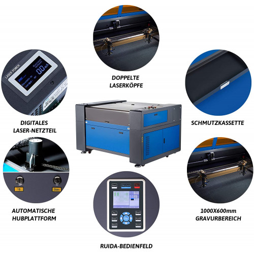 Esta máquina de grabado láser de CO2 de class 1 de 80 W mantiene nuestros altos estándares actuales con su panel de control Ruida, que incluye RDWorks 8 y CorelLaser-Suite, la gran área de trabajo de 1000 x 600 mm.Para mejorar su eficiencia y flujo, esta máquina de corte y grabado láser utiliza dos tubos y cabezales láser industriales. Compatible con la mayoría de los programas gráficos de terceros, esta cortadora láser le permite convertir sus nuevas ideas en realidad a dos velocidades.