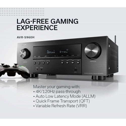 Denon AVR-S960H 8K Ultra HD 7.2 canales (90 vatios x 7) Receptor AV modelo 2020 - Construido para juegos, transmisión de música, audio y video 3D, Alexa + HEOS, negro
