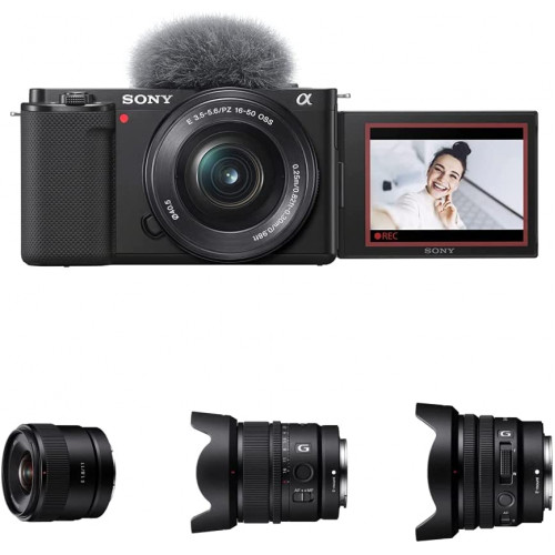 Sony Alpha ZV-E10L - Cámara vlog + Sony E 11 mm F1.8 - Objetivo Gran Angular APS-C + Sony e 15 mm F1.4 G - Objetivo Gran Angular APS - C + Sony E PZ 10-20 mm F4 G - Objetivo Zoom motorizado APS-C