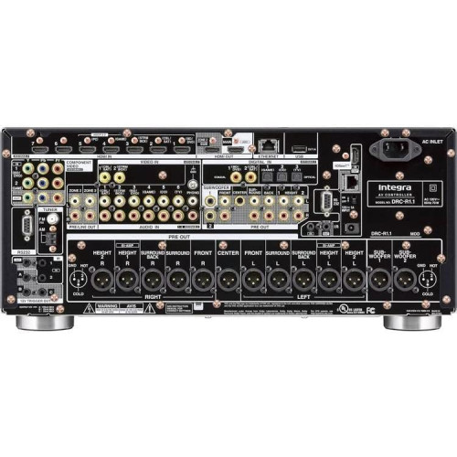 • El procesador DRC-R1.3 y el receptor DRX-R7.3 comparten muchas características clave, como cabría esperar de las gemelas admiras de la prestigiosa serie Research de Integra. Ambos se benefician de una robusta técnica de construcción en la que los bloques de circuitos modulares están montados; mediante tornillos de cobre; en un chasis aislado de doble piel, reforzado en cruz, diseñado para reducir resonancias. Los paneles frontales y las manillas de volumen están fabricados en aluminio y los terminales de audio están todos chapados en oro. Tanto el procesador DRC-R1.3 como el receptor DRX-R1.3 ofrecen salidas pre-out single-ended de 11,2 canales, pero el procesador DRC-R1.3 también ofrece salidas XLR equilibradas a 11,2 canales, que el DRX-R1.3 el receptor deja fuera a favor de una sección de amplificador de potencia certificada THX Ultra2, que proporciona 140W por can. ;8ohm, 20Hz-20kHz, 0,08% THD, 2 canales pilotados, FTC. Ambos soportan las columnas sonoras Dolby Atmos y DTS:X hasta 7,2,4 canales y la conversión digital a analógico a 384kHz/32bit con soporte también para DSD 256. Los mismos chips DAC de alto rendimiento están presentes en ambas unidades: un DAC estéreo AK4490 para los canales delanteros izquierdo y derecho, un par de DAC multicanal AK4458 para los restantes canales principales y un DAC AK4388 para gestionar el audio para las zonas auxiliares. Se trata de una potencia de conversión D/A bastante seria. Los apasionados de analógico apreciarán la entrada phono dedicada presente tanto en el procesador como en el receptor. En el lado de vídeo, tanto el procesador DRC-R1.3 como el receptor DRX-R1.3 disponen de dos salidas HDMI para la zona principal; lo que permite conectar tanto una TV como un proyector; una tercera salida HDMI para el vídeo de la Zona 2. Los instaladores personalizados pueden utilizar amplios juegos de mandos de control RS-232/IP/IR y puertos IP y RS-232 bidireccionales para integrar DRC-R1.3 y DRX-R1.3 con Crestron, AMX de Harman y Control4 sistemas de automatización. El procesador DRC-R1.3 tendrá un amplificador de 11 canales, llamado DRA-R1, que estará disponible a principios de 2020. El receptor DRX-R1.3 incluye 11 canales de amplificación; Clase D3; de alta corriente y baja impedancia de Integra, con un transformador de potencia EI de bajo flujo magnético personalizado, condensadores de nivelación de alta corriente a medida de Integra, y filtrado de salida personalizado; para musicalidad, baja distorsión y respuesta dinámica instantánea.