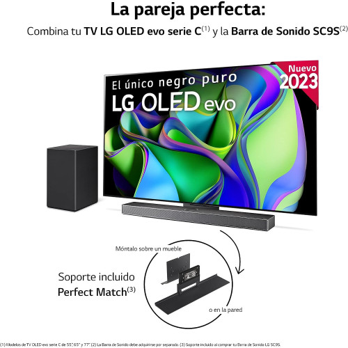 • Combina este TV con la barra de sonido SC9S que incluye un accesorio para convertirla en la propia peana del TV. Válido también para instalación en pared.