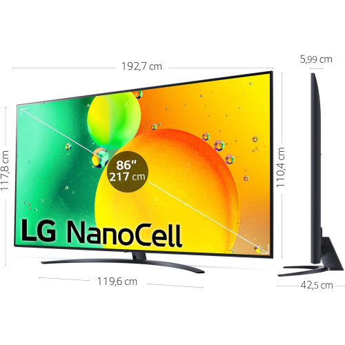 LG Televisor 86NANO766QA - Smart TV webOS22 86 pulgadas (217 cm) 4K Nanocell, Procesador Inteligente de Gran Potencia 4K a7 Gen 5 con IA, compatible con formatos HDR 10, H y HGiG[Clase de eficiencia energética G]
