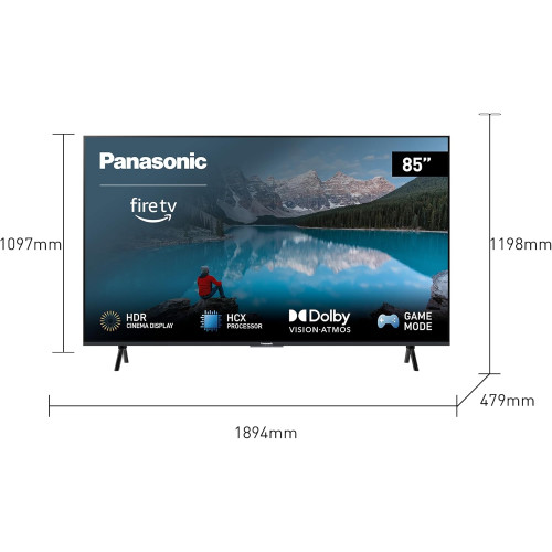 Panasonic TX-85MX800E, Smart TV LED 4K Ultra HD 85 Pulgadas, Alto Rango Dinámico, Dolby Atmos y Dolby Vision, Fire TV, Prime Video, Alexa, Netflix, Modo Juego, Color Negro [Clase de eficiencia energética G]