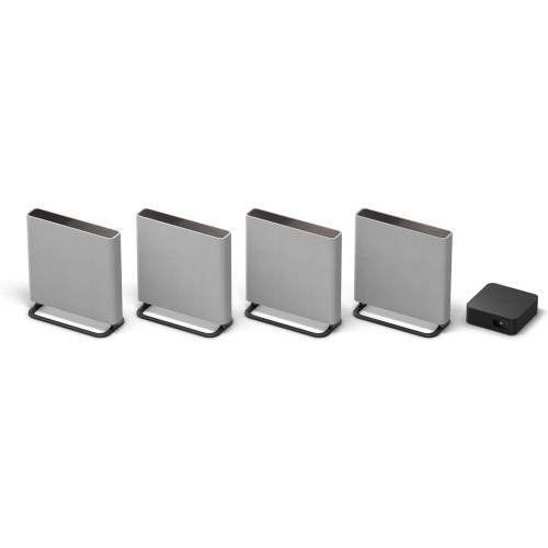 - DISEÑO VERSÁTIL: diseñados para complementar la decoración de tu salón: los micrófonos duales dentro de cada altavoz miden tu posición, generando 12 altavoces fantasma que rodean tu habitación con un sonido envolvente.